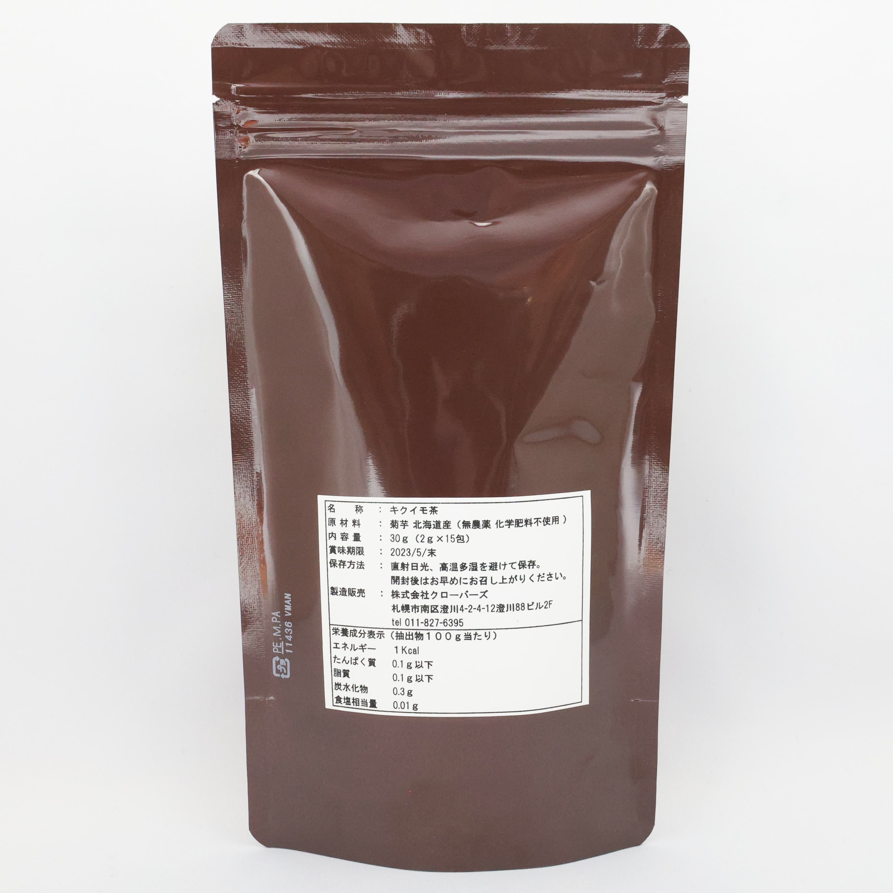 沸騰したお湯500mLにティーバッグ1包を入れ、10分程おいてお飲みください。また、同量の水に1包入れたものを冷蔵庫で1晩おくと、水出し冷茶もお楽しみいただけます。 お飲み頂いたあとのキクイモも、お召し上がりいただけます。 ハンバーグのたねに混ぜたり、ごまや鰹節と一緒にお醤油やお酒で味を付け、ふりかけにしても。 豊富な栄養を余すことなく、お召し上がり下さい。 キクイモの収穫時期により風味に多少の違いが出ることがあります。 その時々の味をお楽しみください♪